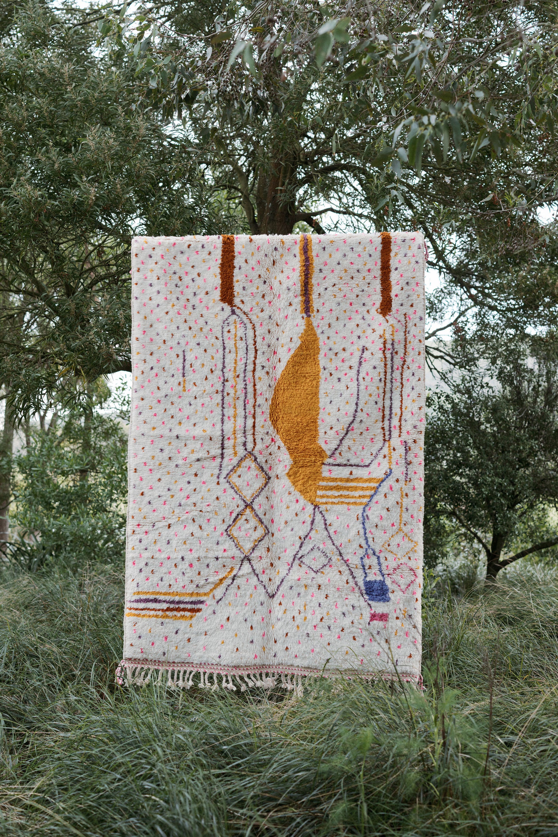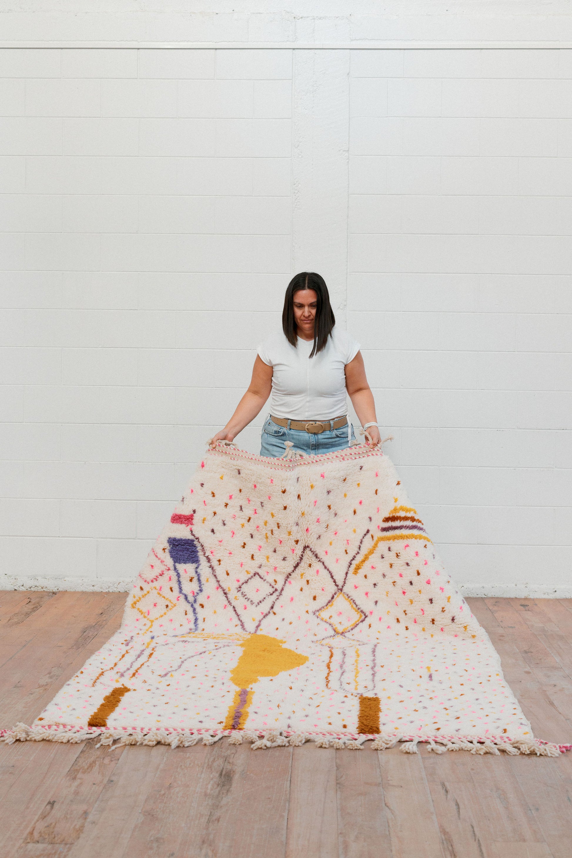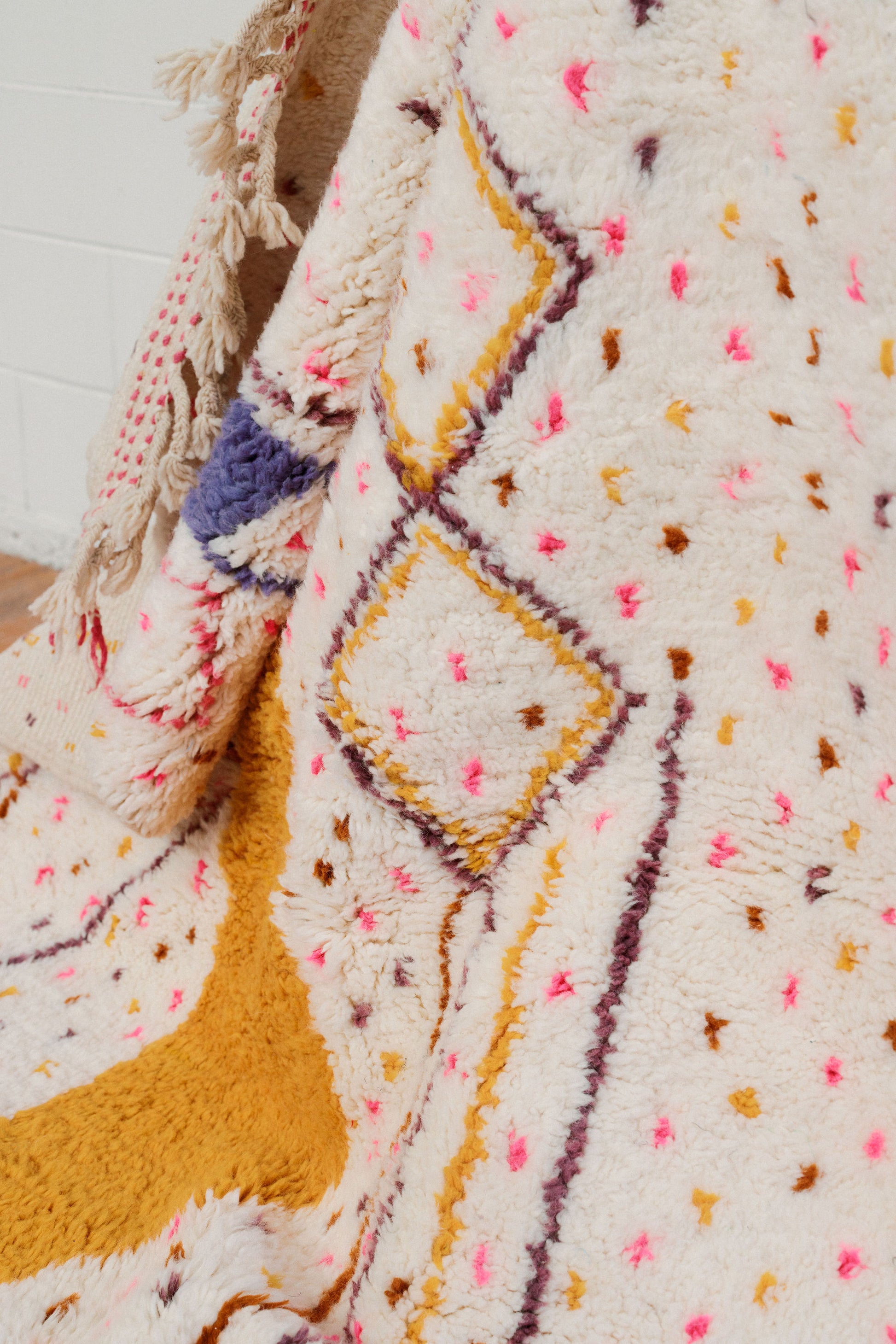 Originally woven by the nomadic Berber tribes of Morocco, Beni Ourain rugs have always mixed durability with beauty. Crafted to provide warmth and comfort in the cold mountain air, they also provided a canvas for artisans to express a rich cultural tradition, weaving motifs and designs.