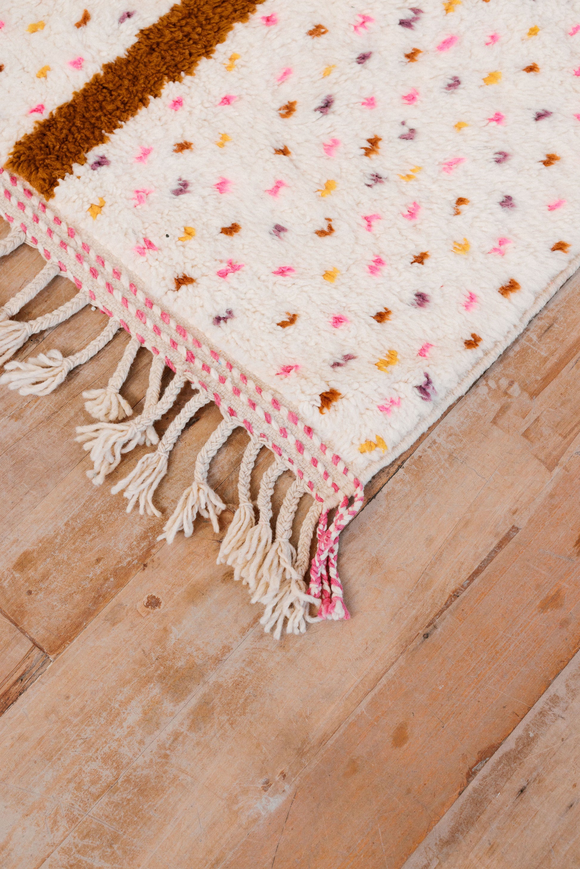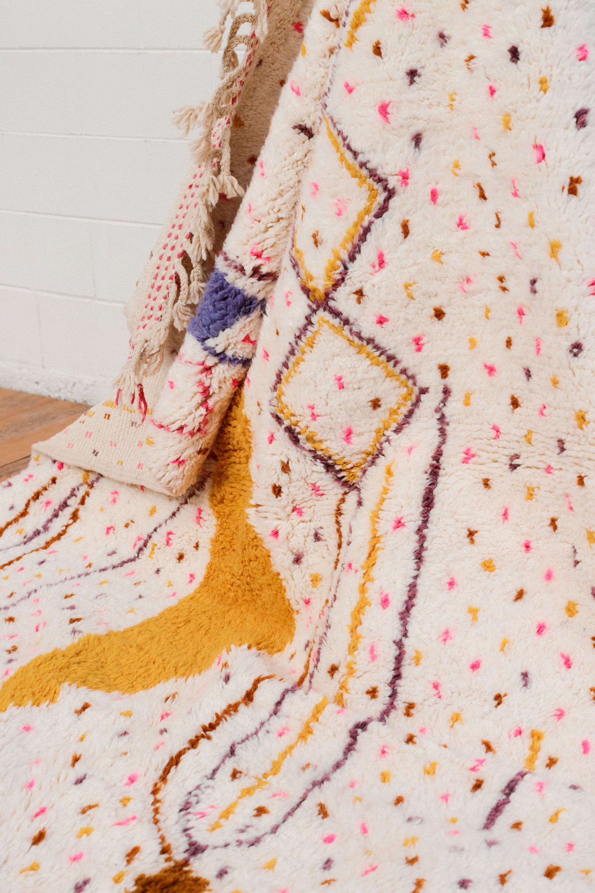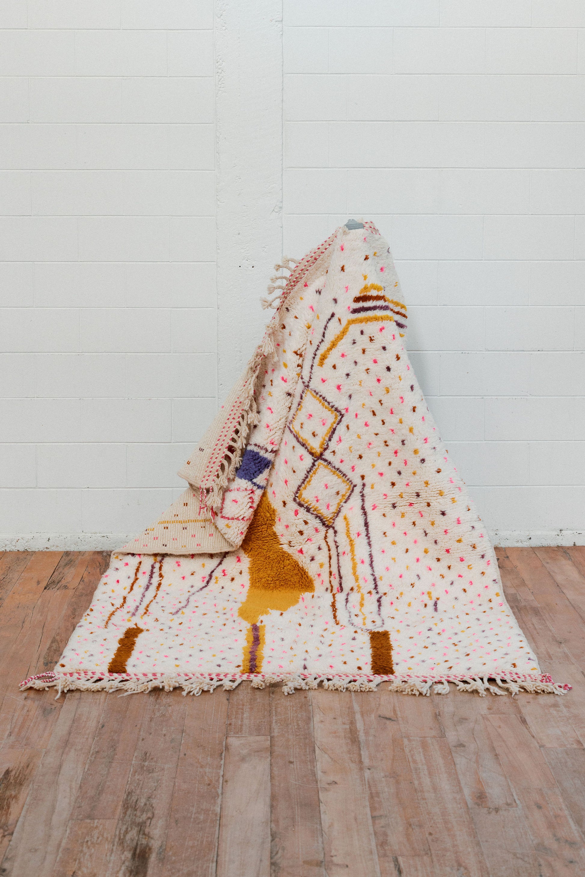 Originally woven by the nomadic Berber tribes of Morocco, Beni Ourain rugs have always mixed durability with beauty. Crafted to provide warmth and comfort in the cold mountain air, they also provided a canvas for artisans to express a rich cultural tradition, weaving motifs and designs.