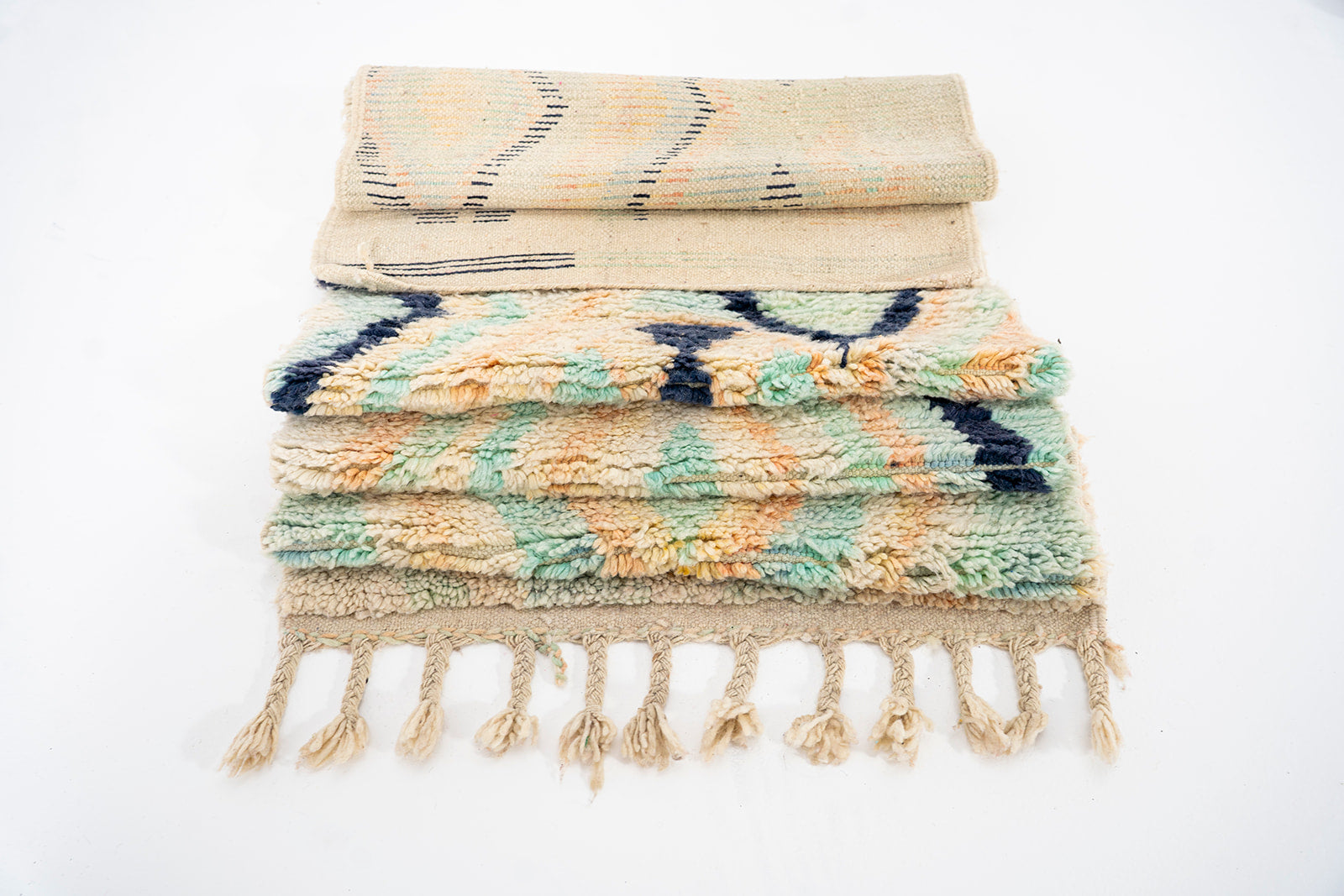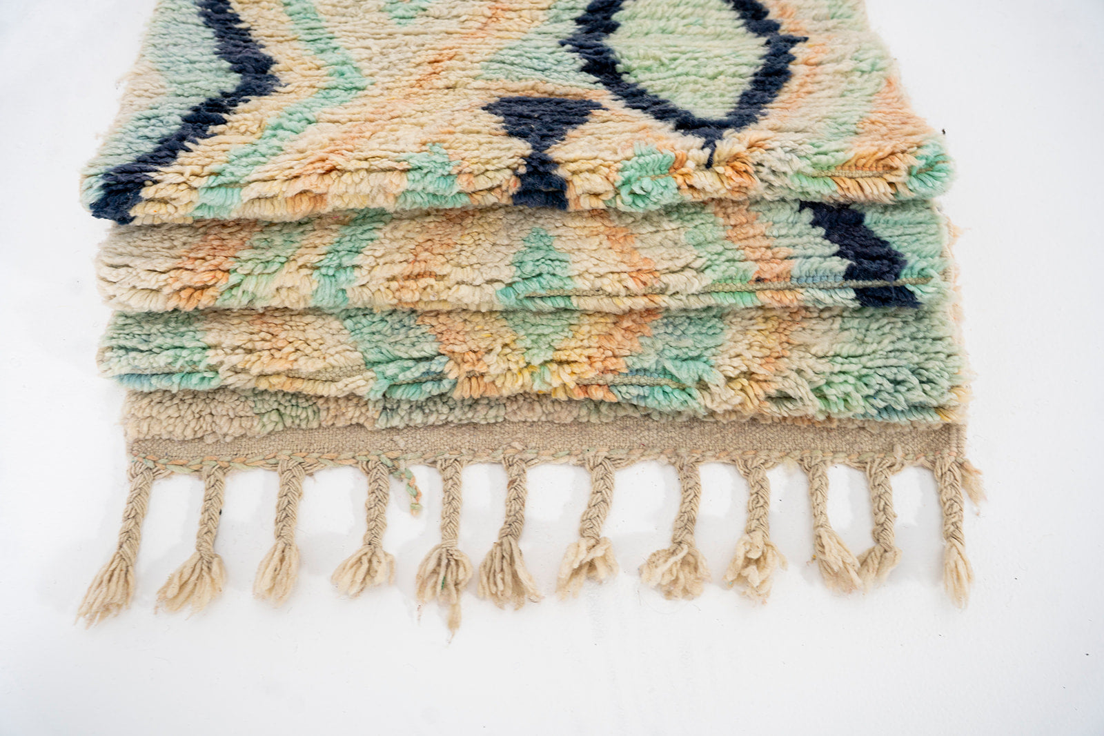 These rugs are handcrafted by the women of the various tribes of Morocco and can take a few months to a year to complete. Each tribe has a particular style craft and the rugs are given the name sake of these tribes ie Boujaad.