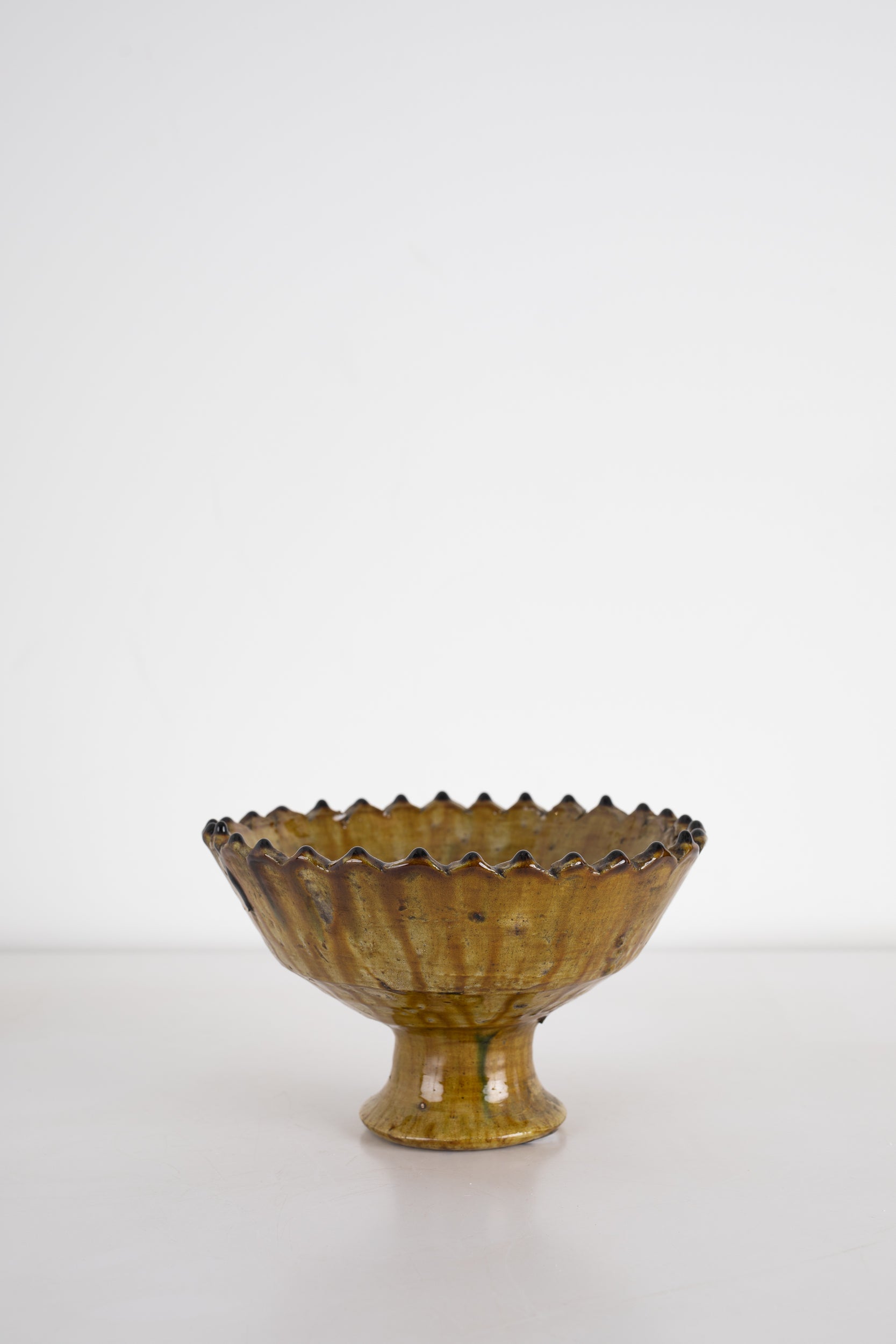 Moroccan Mustard Zig Zag Pedestal Bowl - 22 H x 12 W cm - Medium