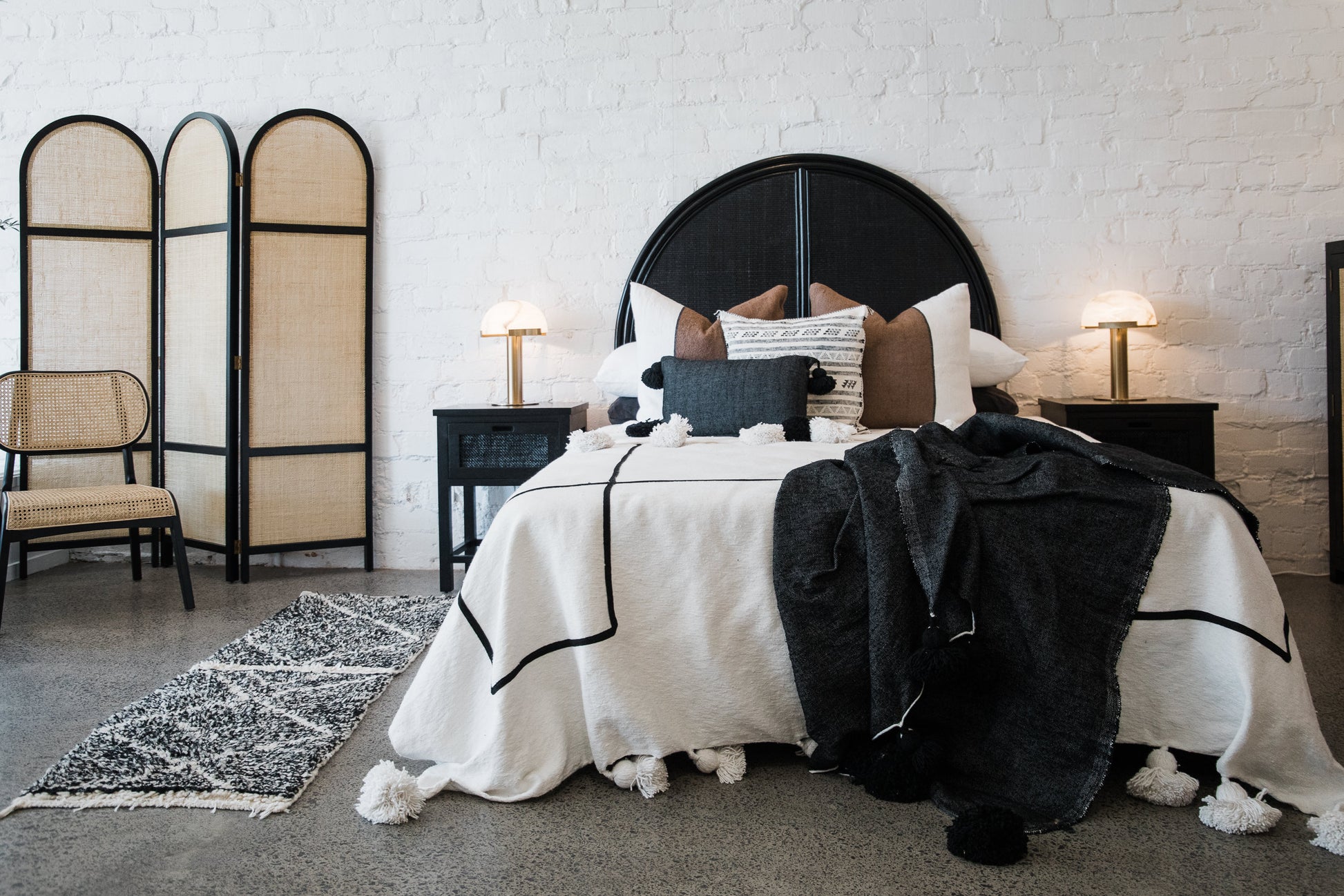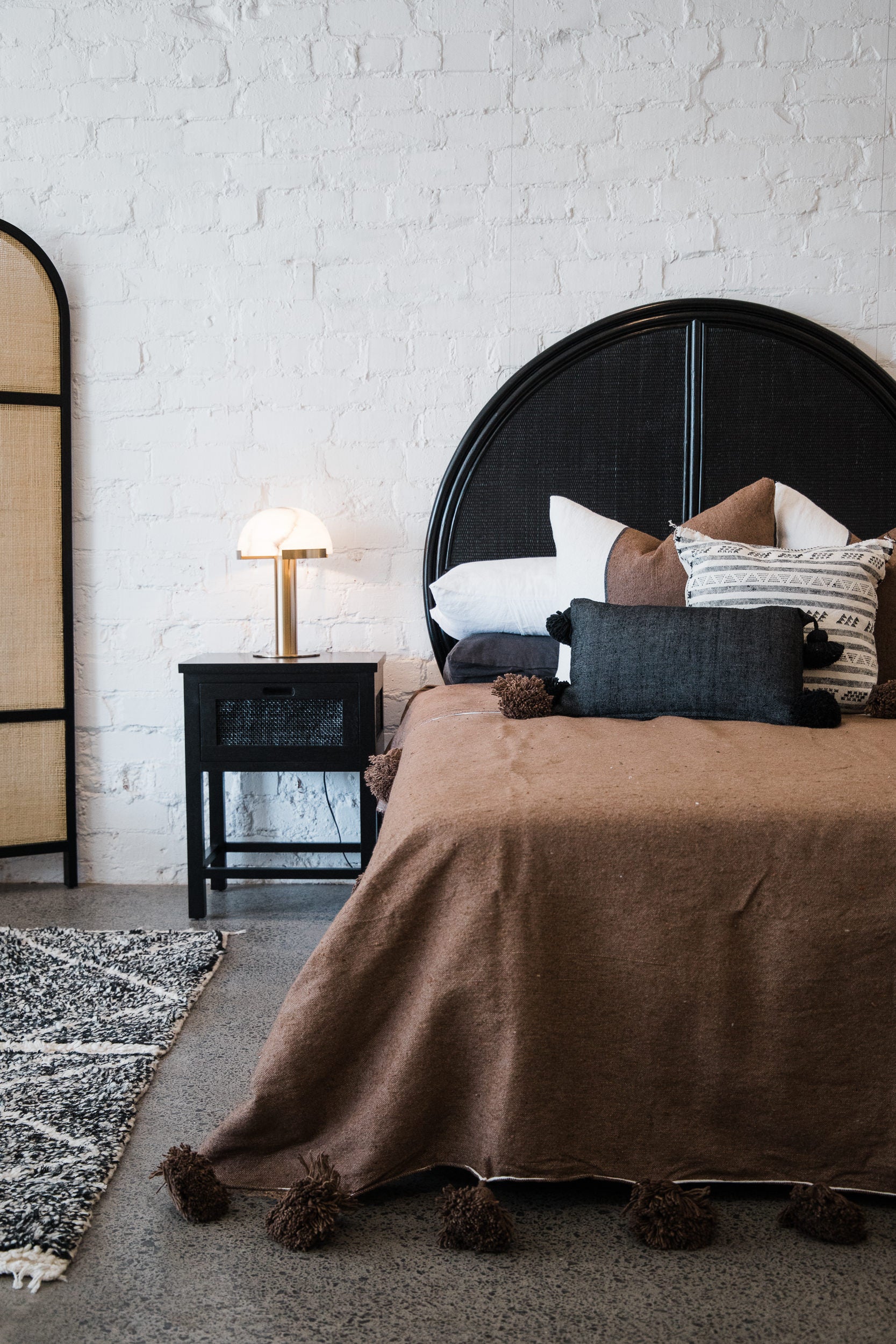 Beautiful hand weaved pom pom cushions, handmade in the souks of Marrakech.