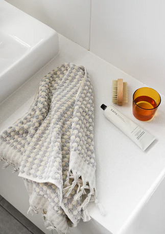 This hand towel is made the old fashioned, slow way in Turkey. Hand loomed using traditional weaving methods by small groups of artisans, with the tassels tied by hand by elderly women in the village.