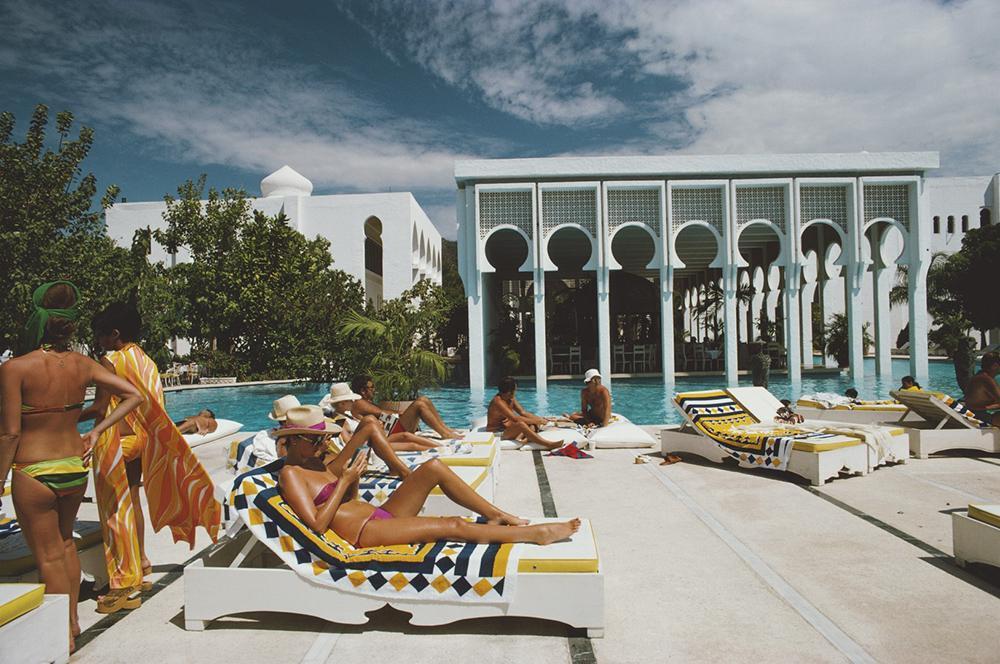 'Armando's Beach Club' taken by famous photographer, Slim Aarons of sunbathers at Armando's Beach Club, Acapulco, Mexico, February 1975.