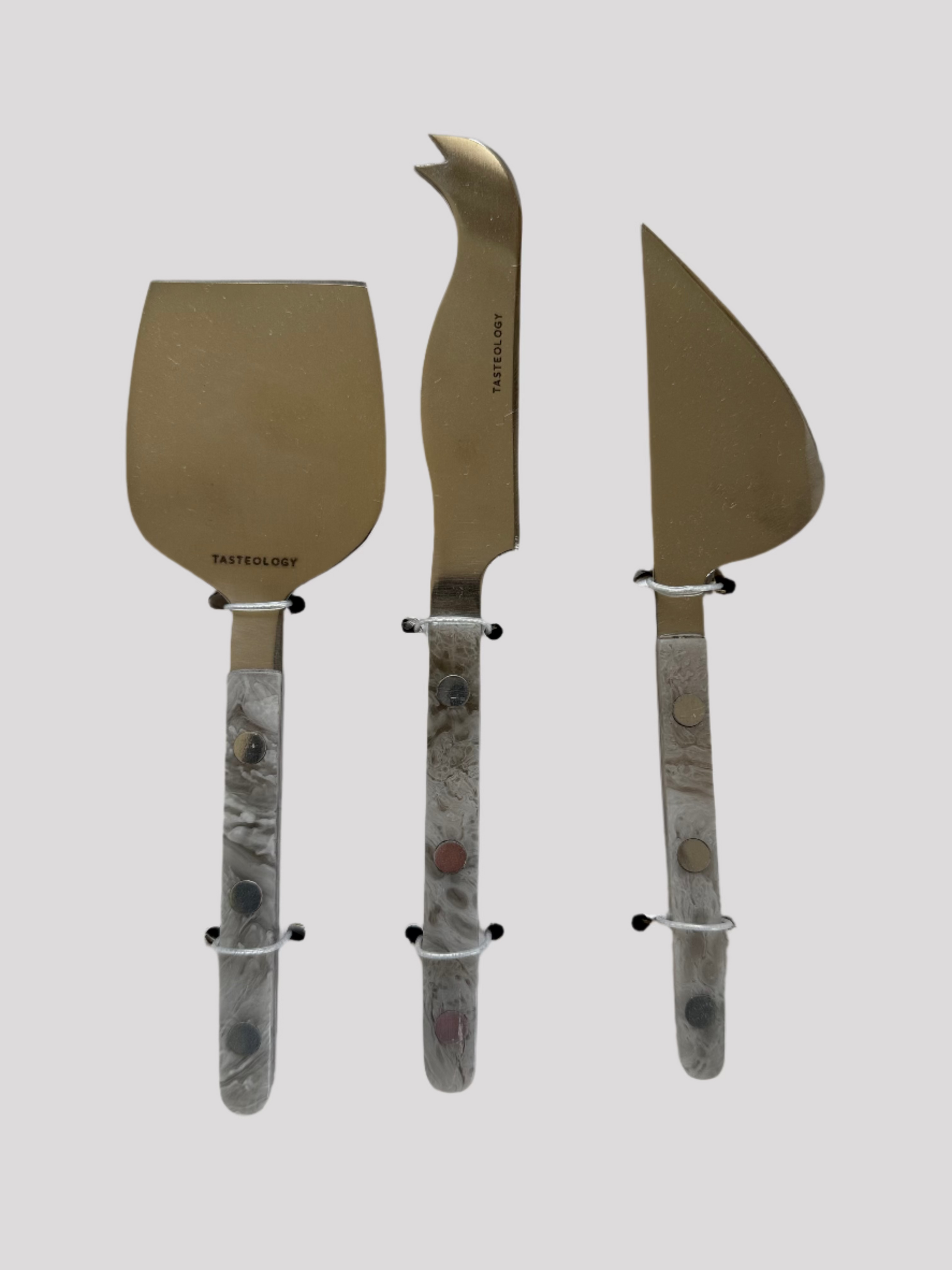 These beautifully handmade cheese knifes are the perfect accompaniment to cheesboards, grazing platters or the picnic table. This set of 3 comes with a spreader knife, a spade knife, and a hard cheese knife, and is packed into a sleek high quality gift box.