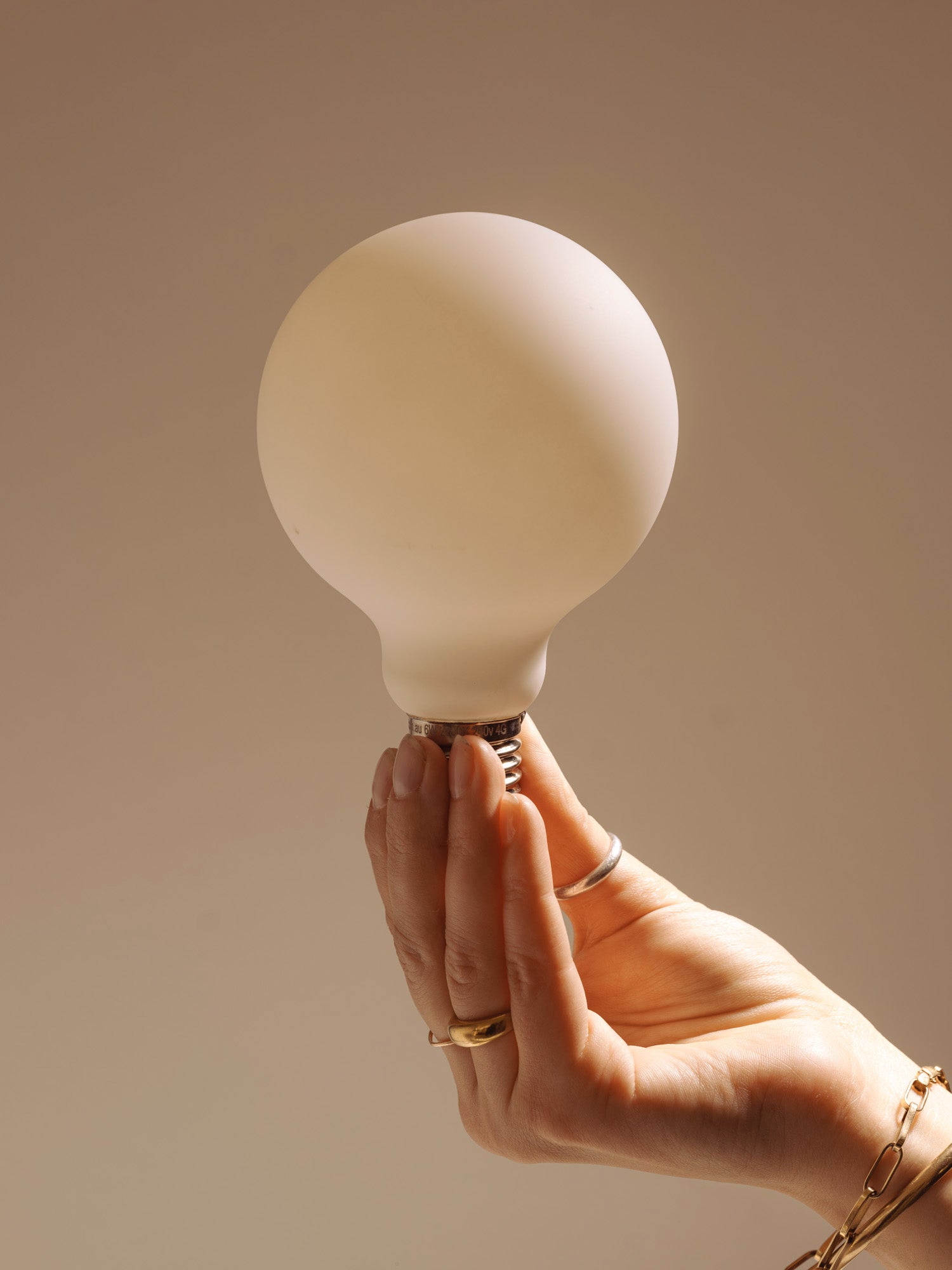 LIGHT SOURCE (included): 240V- E27, Porcelain Frosted globe. Choice of 6W, 2700K or 8W, 3000K.